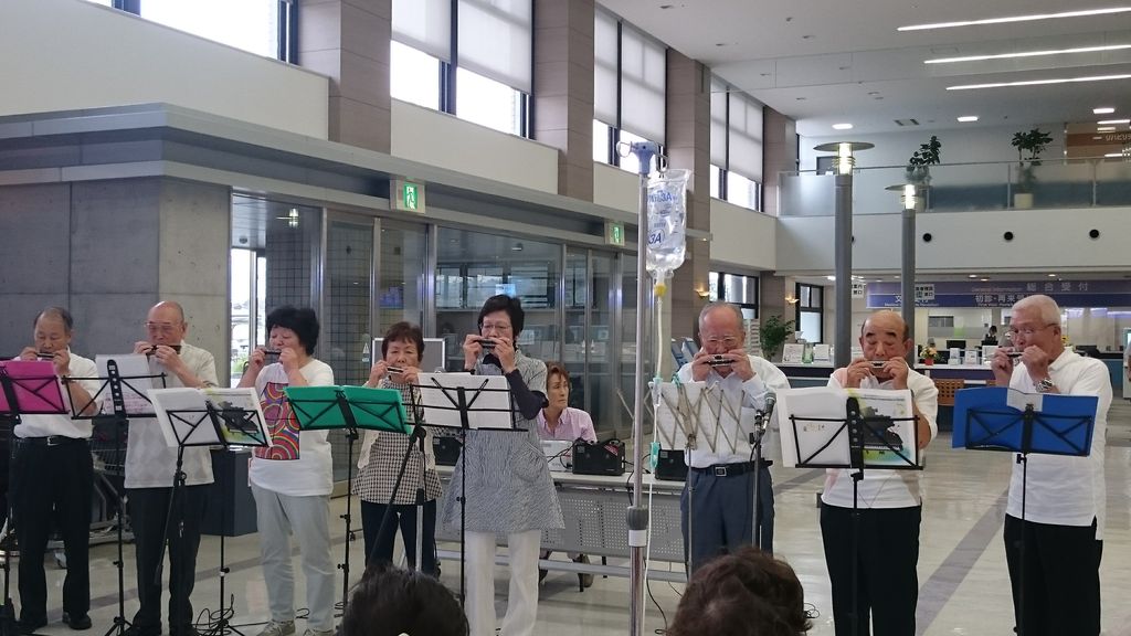 6月の第4月曜日はお馴染みの草津総合病院ボランティアコンサートでした。今月は京都からWホープの皆さん8名の多くの方が演奏してくださいました。