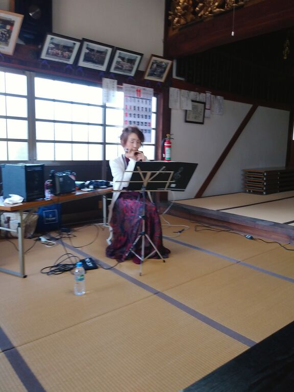 勤労感謝の23日近江八幡市長命寺町にある「西方寺」というお寺でライブをしました。このお寺は私の両親の墓がある願い寺です。